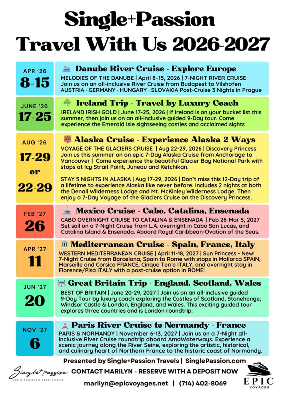 Come see the world with fun and friendly singles that can't wait to meet you.