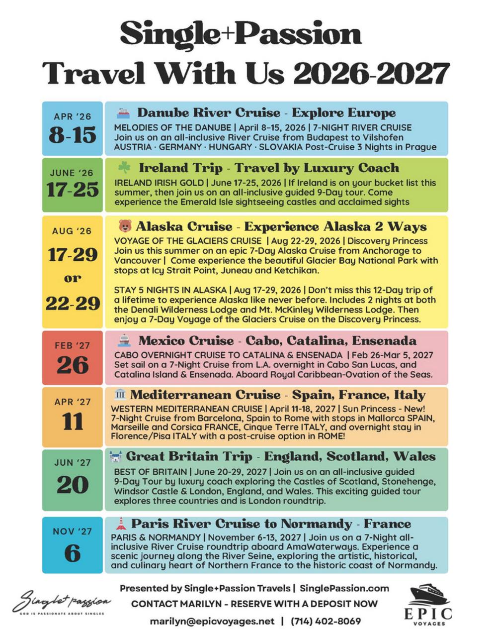 Why travel alone when you can join single adults on trips of a lifetime in 2026.